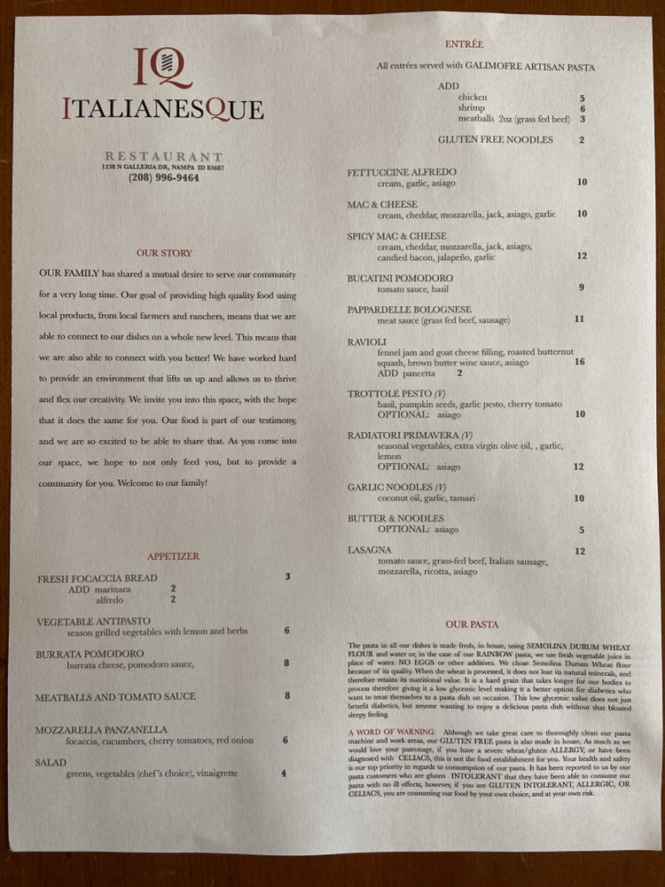 Nestled in Nampa, Idaho, Italianesque presents a delightful journey into the world of seafood with an Italian twist. The ambiance is inviting, merging rustic charm with a modern touch, making it a perfect spot for casual dining or a special occasion.